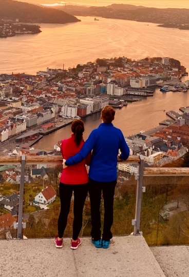 Tar deg til toppen av Fløyen der du blant annet finner Fløistuen butikk, Fløistuen kafé, Skomakerstuen, Fløirestauranten, Bergens beste lekeplass, Trollskogen, geiter, turområder og byens fineste utsikt.