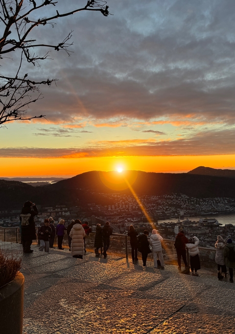 Experience the magical Christmas feeling at Mount Fløyen in December.
