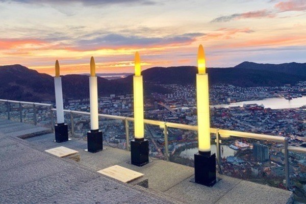 Every Sunday in Advent there will be Christmas carols and lighting of Advent candles at 13:00. This is a great countdown to Christmas with fun activities for all our visitors at Mount Fløyen! In 2025 it is 26 years since this tradition started. The big Advent candles will stay throughout December, and they look really nice on your Instagram photos.