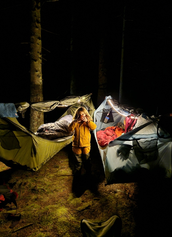 Å sove i hengekøye under åpen himmel gir en ekstra nærhet til naturen. Sovne til en vakker vinterkveld og våkne til fuglekvitter – og kanskje ser du glimt av hare og ekorn som gjemmer seg i skogen? Dersom du ikke ønsker å overnatte, men bare henge med oss ut over kvelden, er det selvsagt helt i orden.